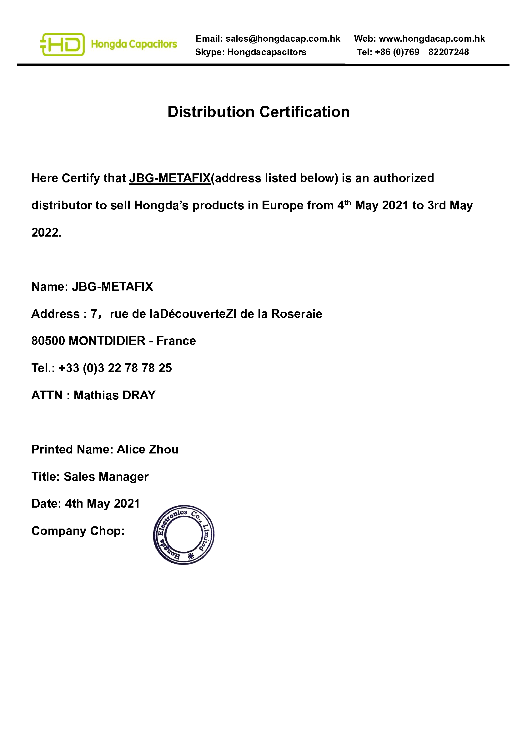 Franchise HONGDA et company profile 2021